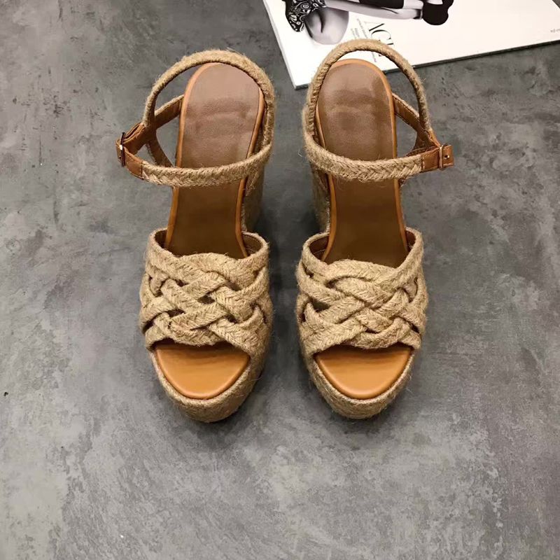 Korean hemp wedges knitted band slip on woman slippers outside flipflops shoes women sandals open toe weave platform slides 2020.
