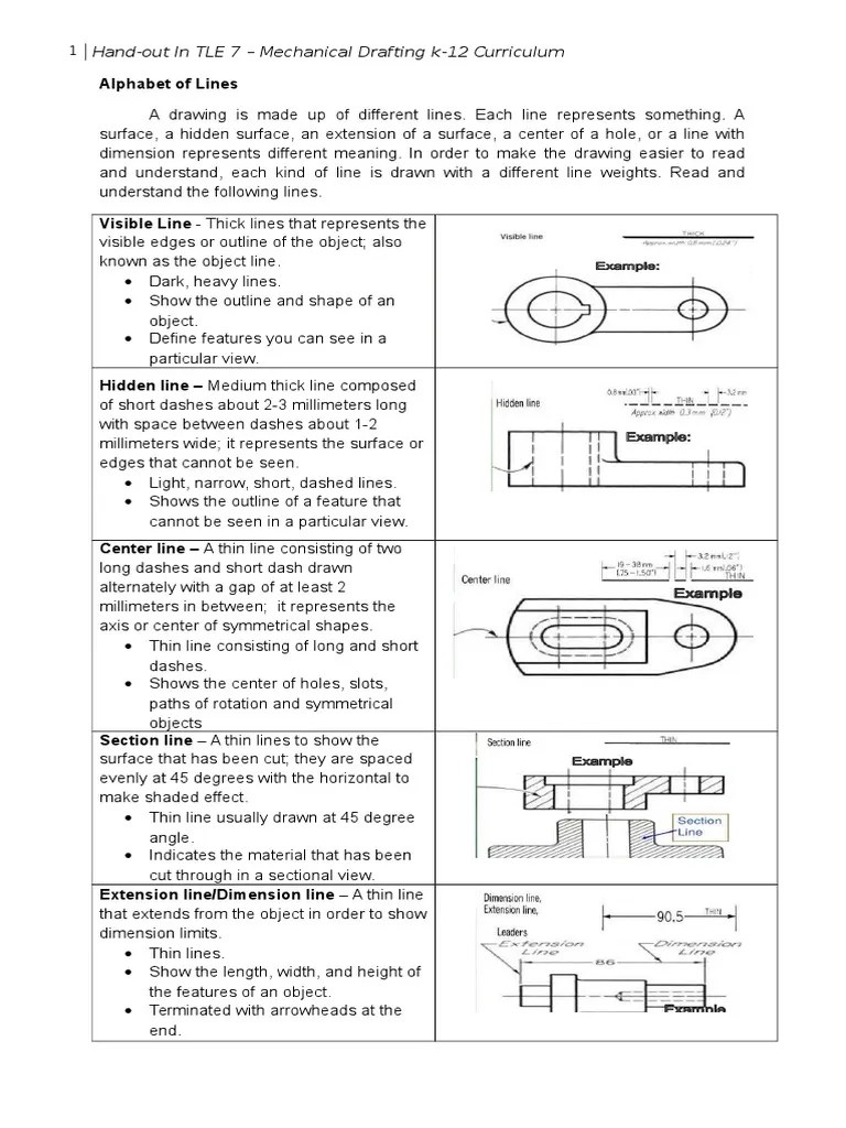 Technology and livelihood education (learning module): It is a light line drawn with very . Light thin lines used to show the sizes of the object. Learn vocabulary, terms, and more with flashcards, games, and other study tools. It is a list of line symbols that are used in technical drawings to represent shapes and describe the size of an object. Using the alphabet of lines. Alphabet of lines lines are the critical component of sketching lines have different types, thickness . Lines used to show a surface ihat has been cut in a section view. Grade 8 technology and livelihood education (tle) student like you ought to possess,. Start studying tle ( alphabet of lines). A grade 7/grade 8 technology and livelihood education (tle) student ought to possess, . Electric power distribution line construction (nc ii). For you to get a complete picture of the complete tle exploratory course on mechanical drafting, you are hereby provided with the.